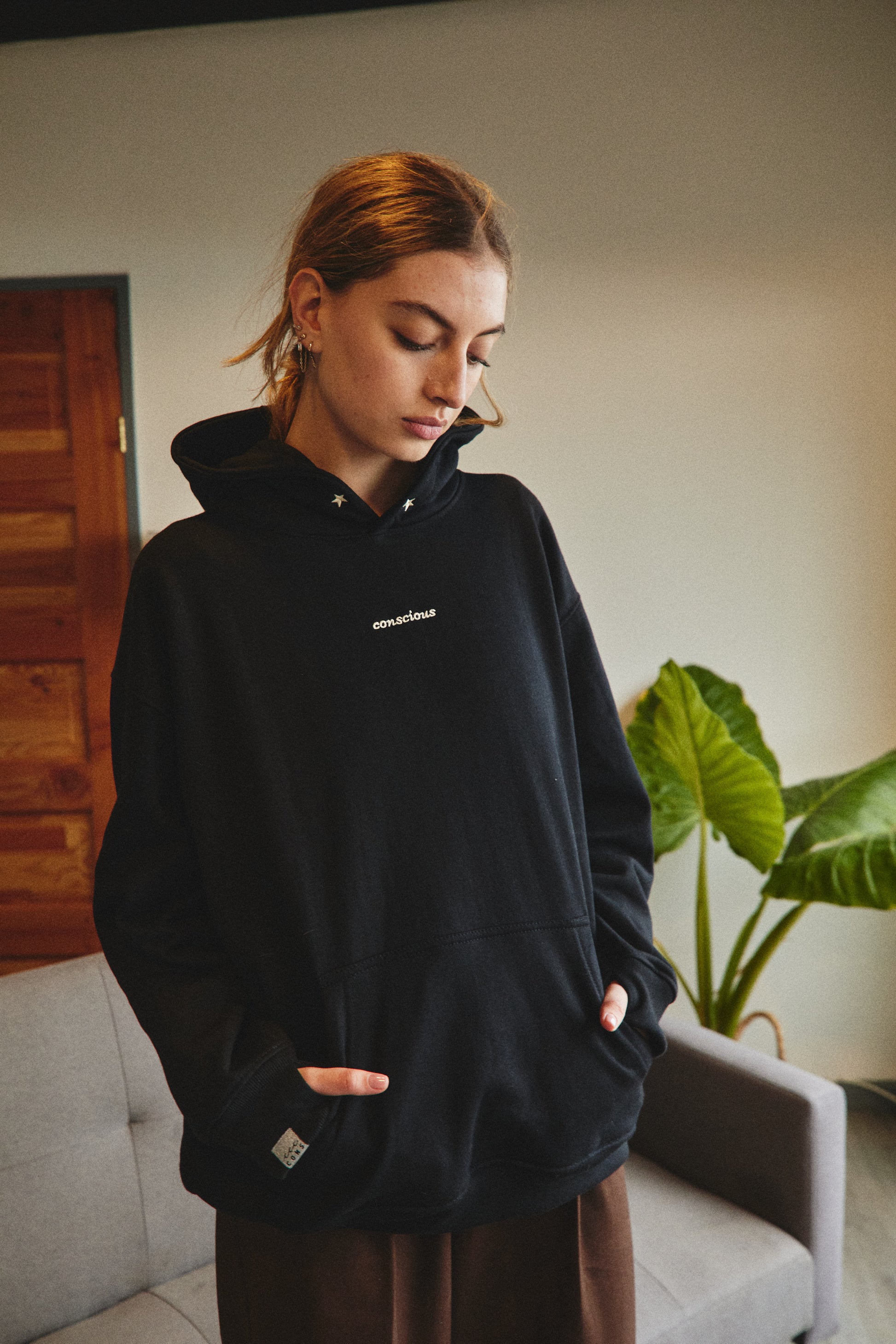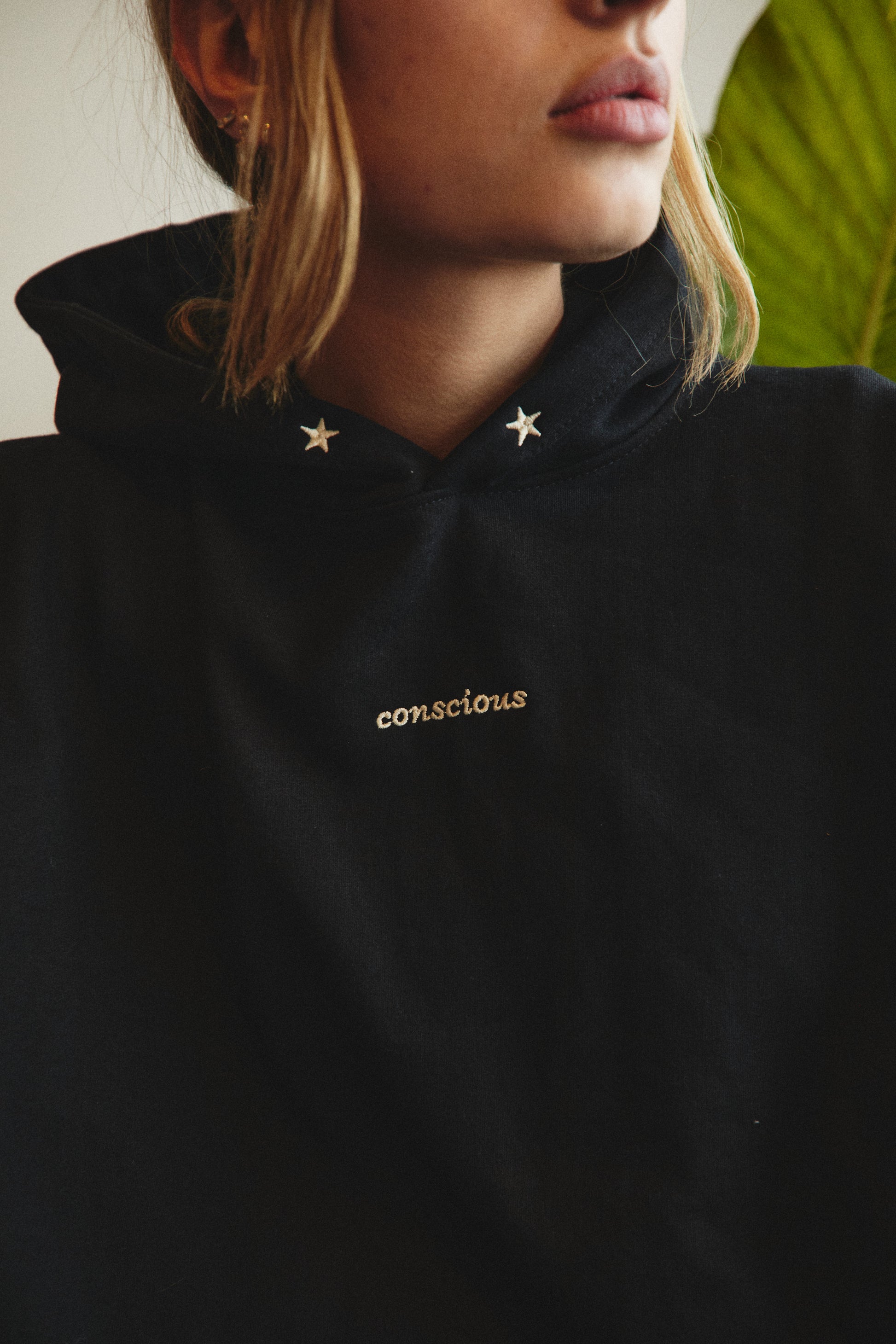 HOODIE CONSCIOUS STARS BLACK OVERSIZE ♀