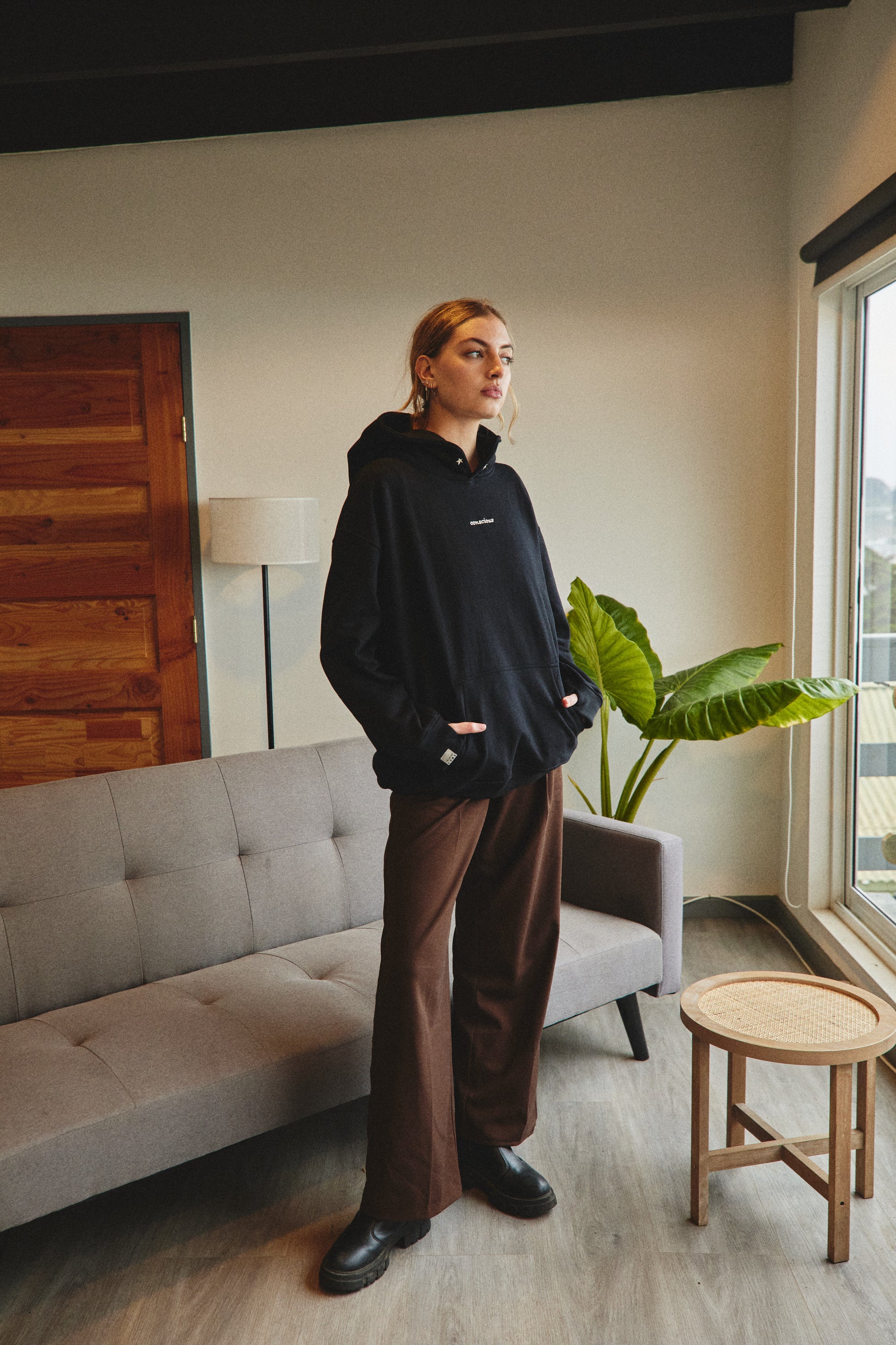 Un hoodie que mezcla flow y comodidad, tiene el bordado perfecto para mantener el estilo intacto, es oversize y muy calentito. Tiene una abertura en el puño para que puedas introducir tu pulgar, muy cool.