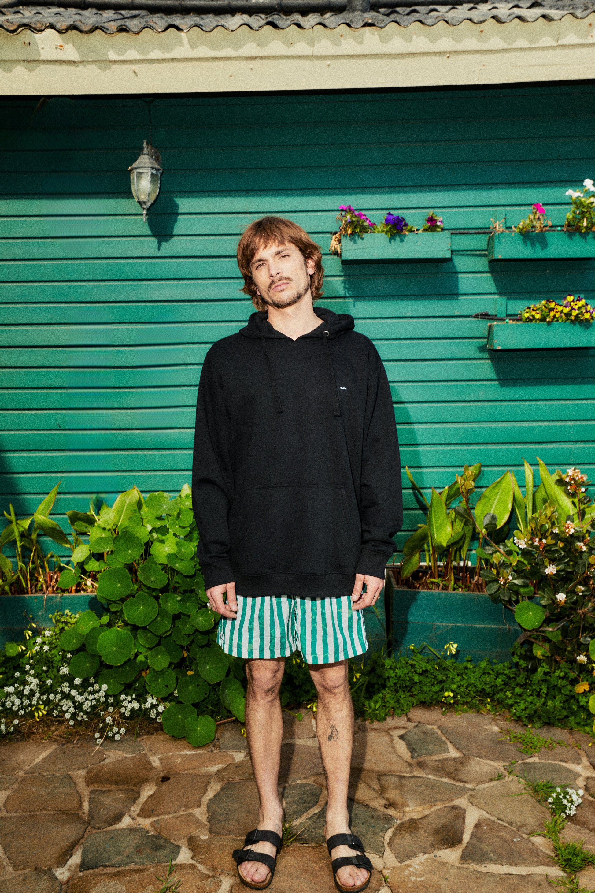 Polerón 100% algodón color negro con estampado libre de plástico.