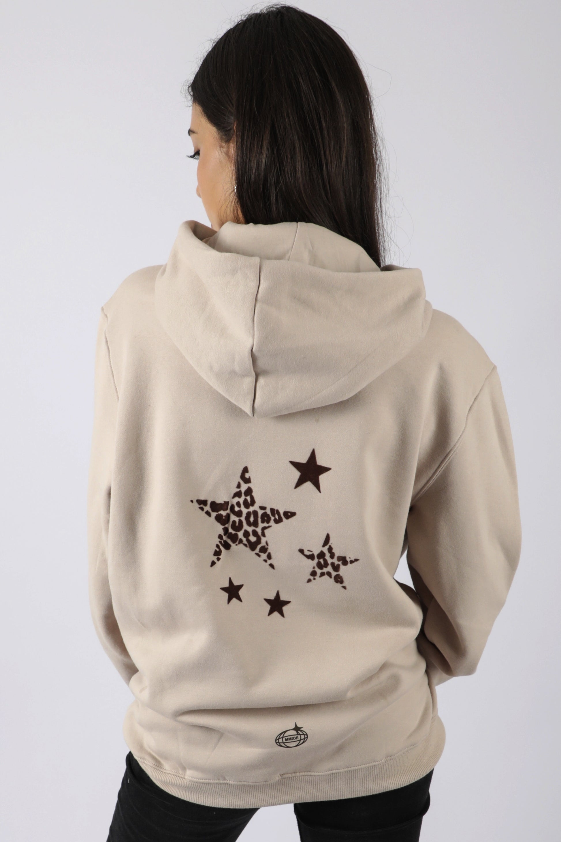 Hoodie color beige con estampado aterciopelado color café oscuro