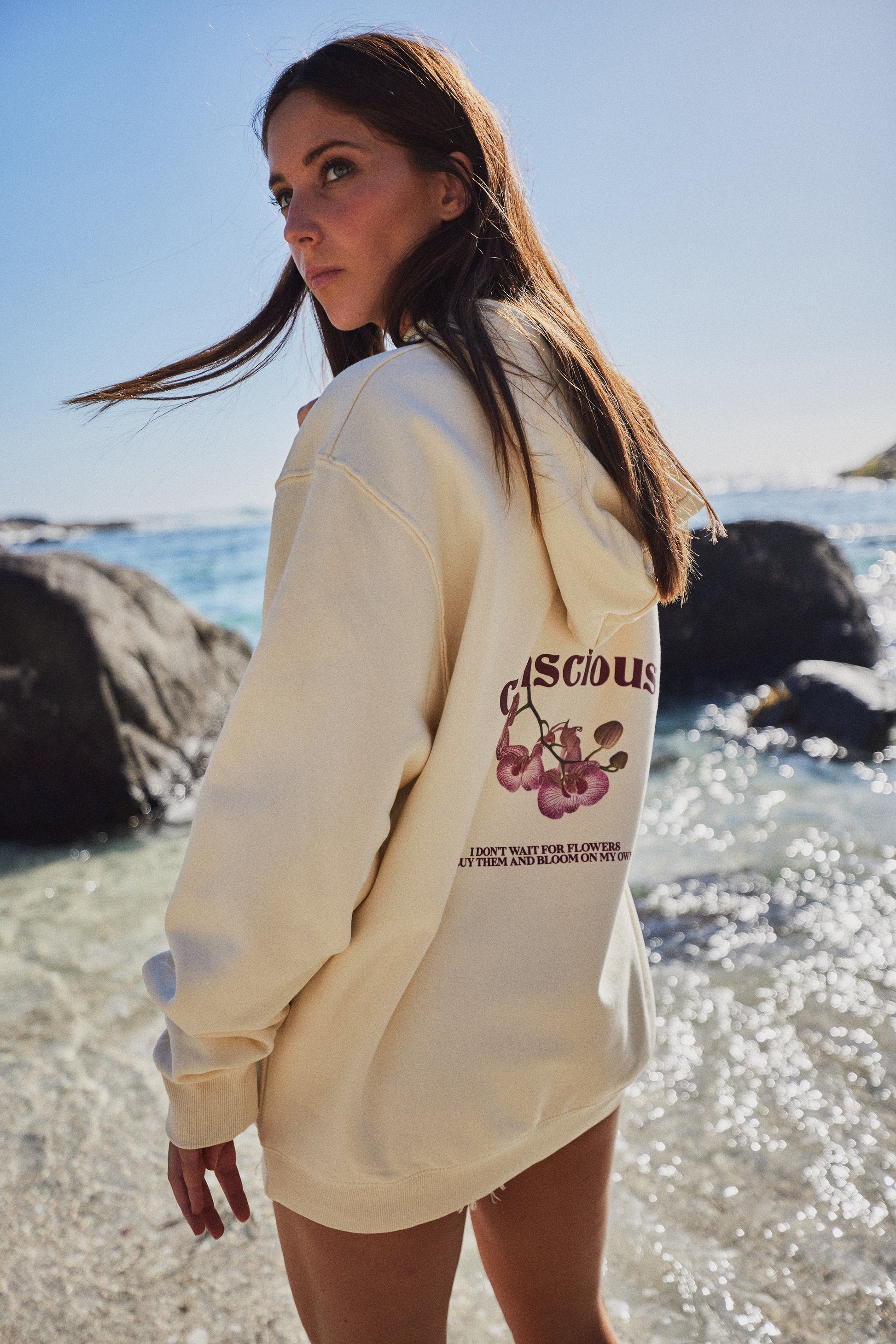 Disfruta de la suavidad y comodidad de este hoodie amarillo claro, hecho 100% de algodón. Su diseño de orquídeas con texto en contraste le da un toque único. Perfecto para darle vida y versatilidad a tu estilo, úsalo como quieras y destaca con un look fresco y lleno de personalidad.