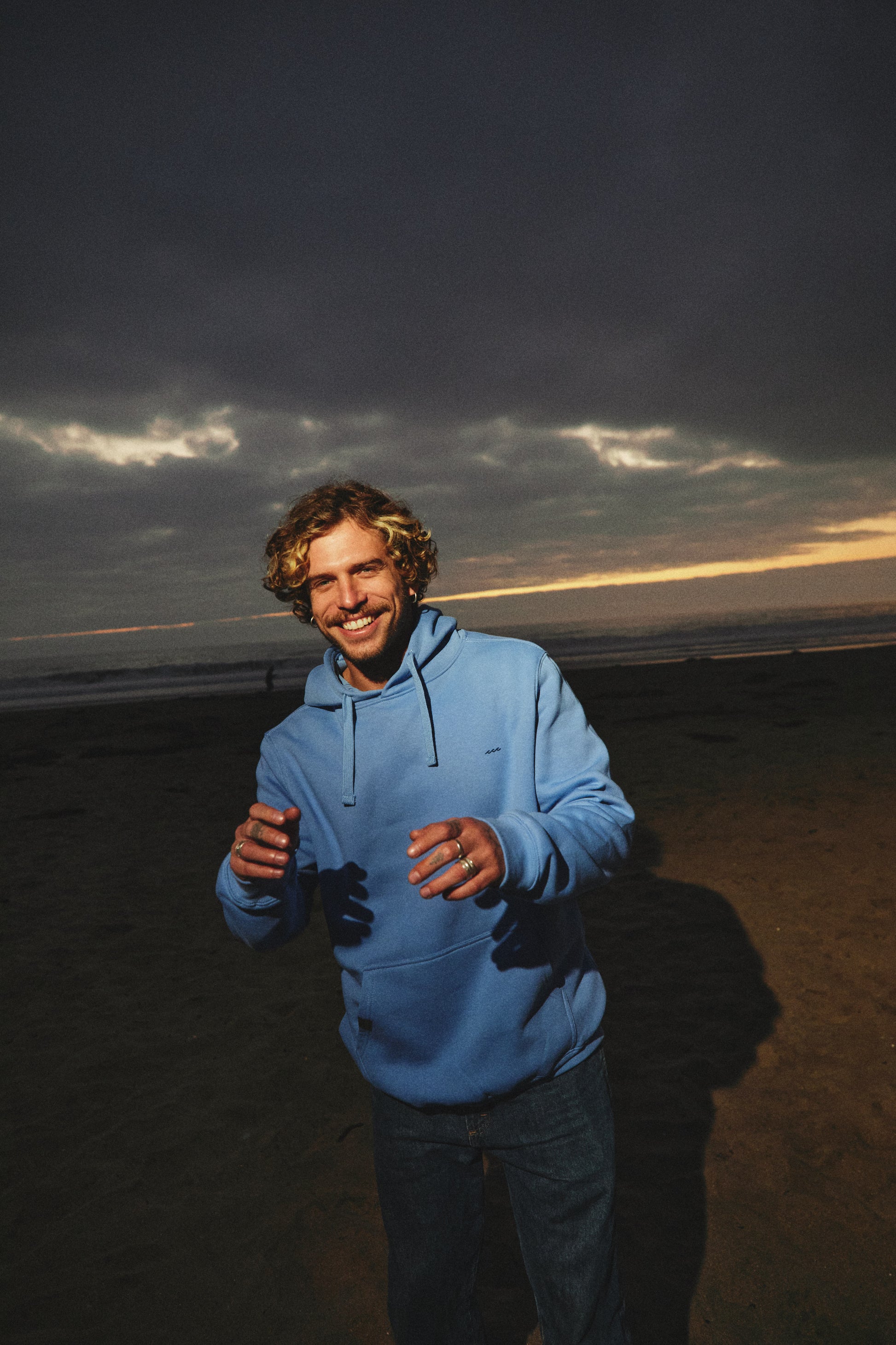 Sumérgete en la onda marina 🌊 Con un bello estampado en la espalda, este hoodie celeste es perfecto para quienes llevan el mar en el corazón.