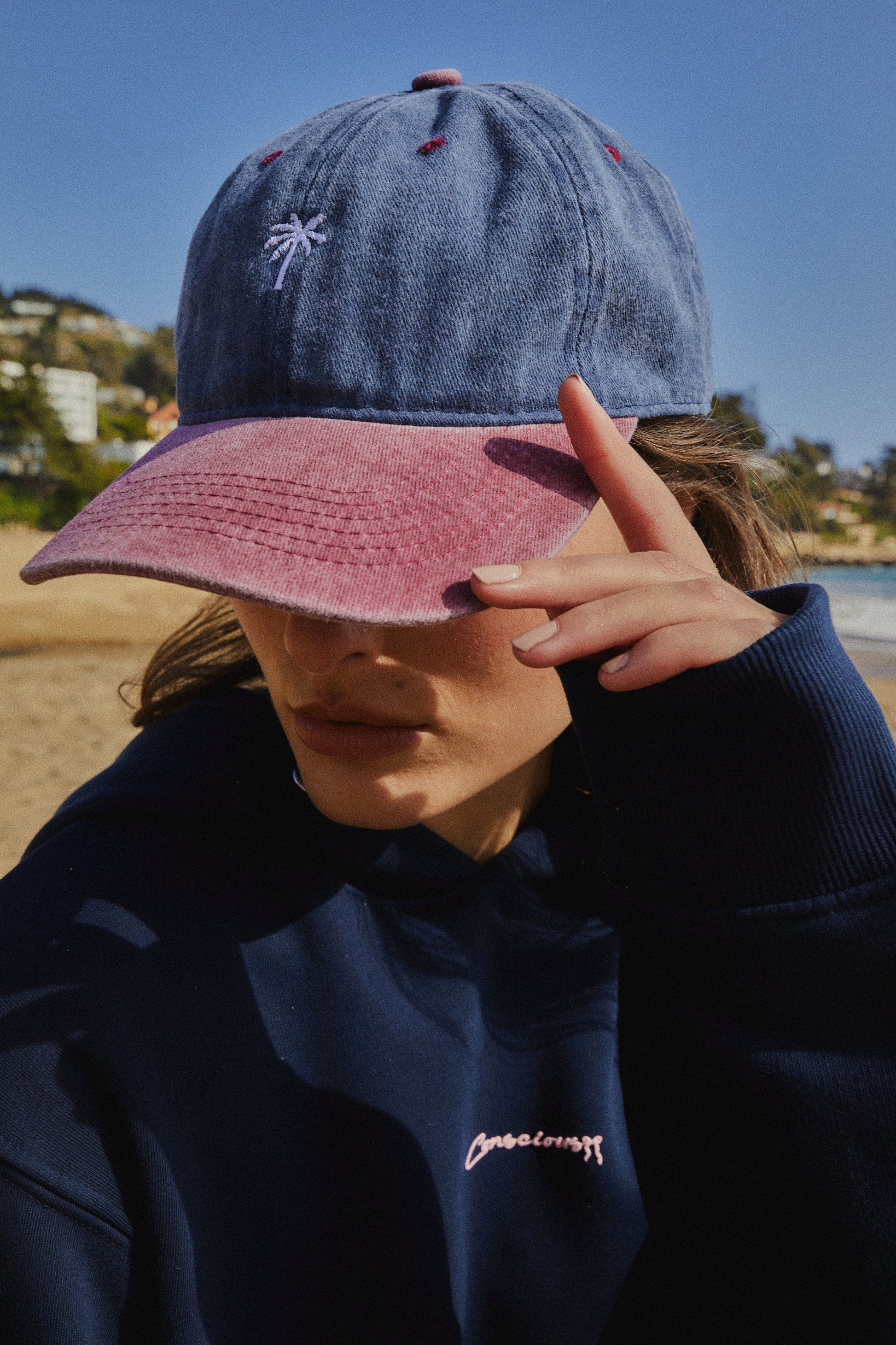 Pura comodidad y estilo con este jockey bicolor, decorado con un bordado de palmera. Ofrece un 50% de protección solar, perfecto para acompañarte en todas tus aventuras bajo el sol. ¡Un accesorio práctico para cualquier día al aire libre!