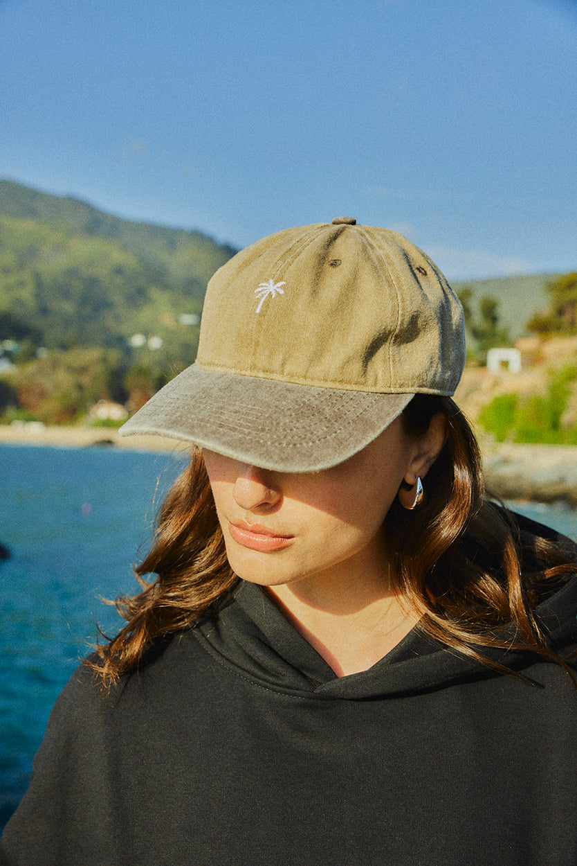 Pura comodidad y estilo con este jockey bicolor, decorado con un bordado de palmera. Ofrece un 50% de protección solar, perfecto para acompañarte en todas tus aventuras bajo el sol. ¡Un accesorio práctico para cualquier día al aire libre!