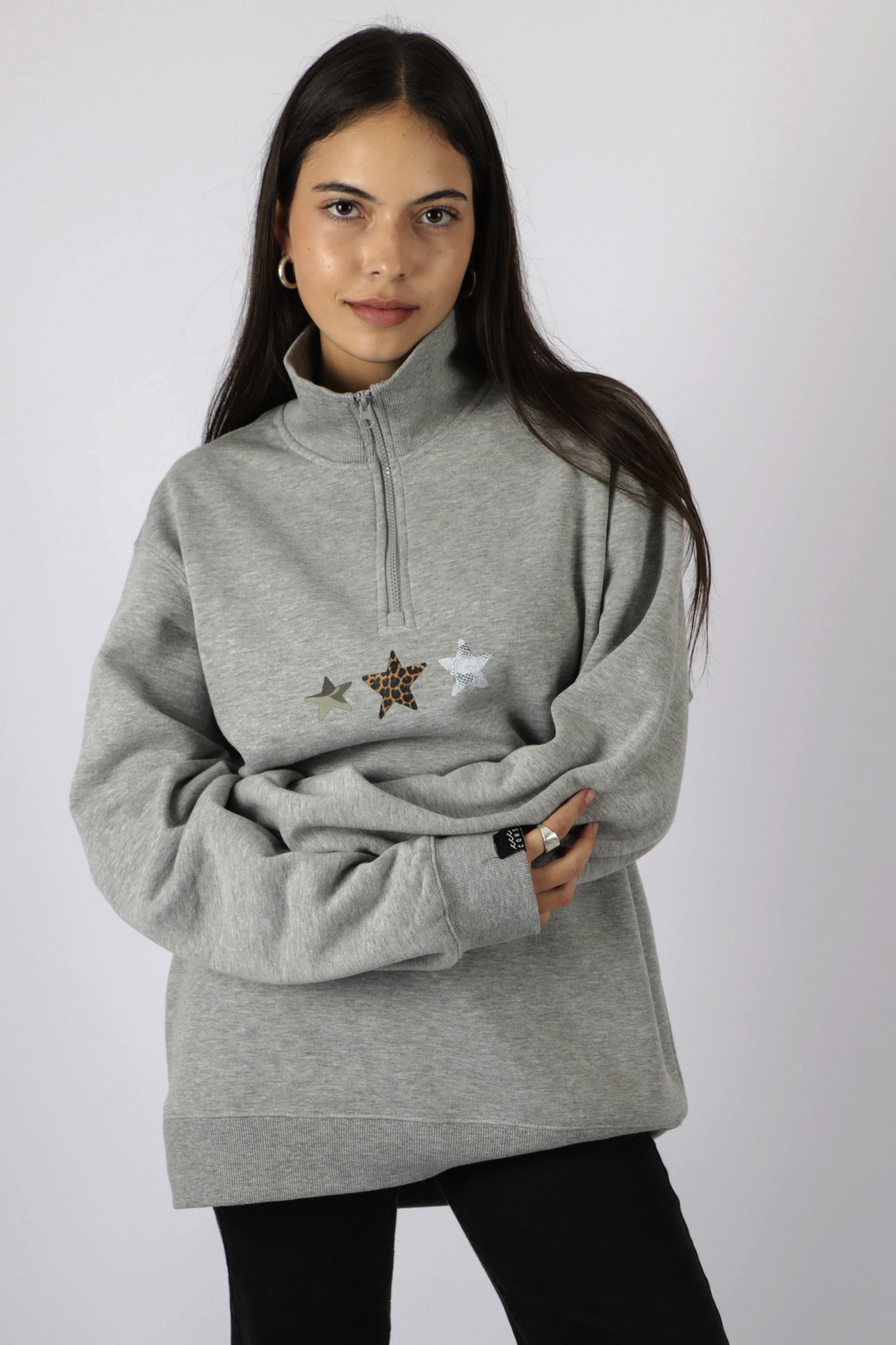 QUARTER ZIP 3 STARS PRINT GRAY ♀